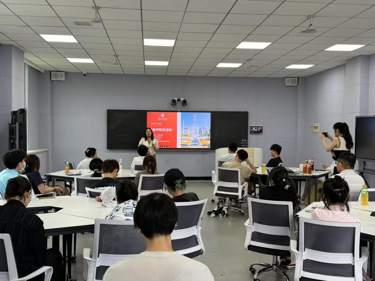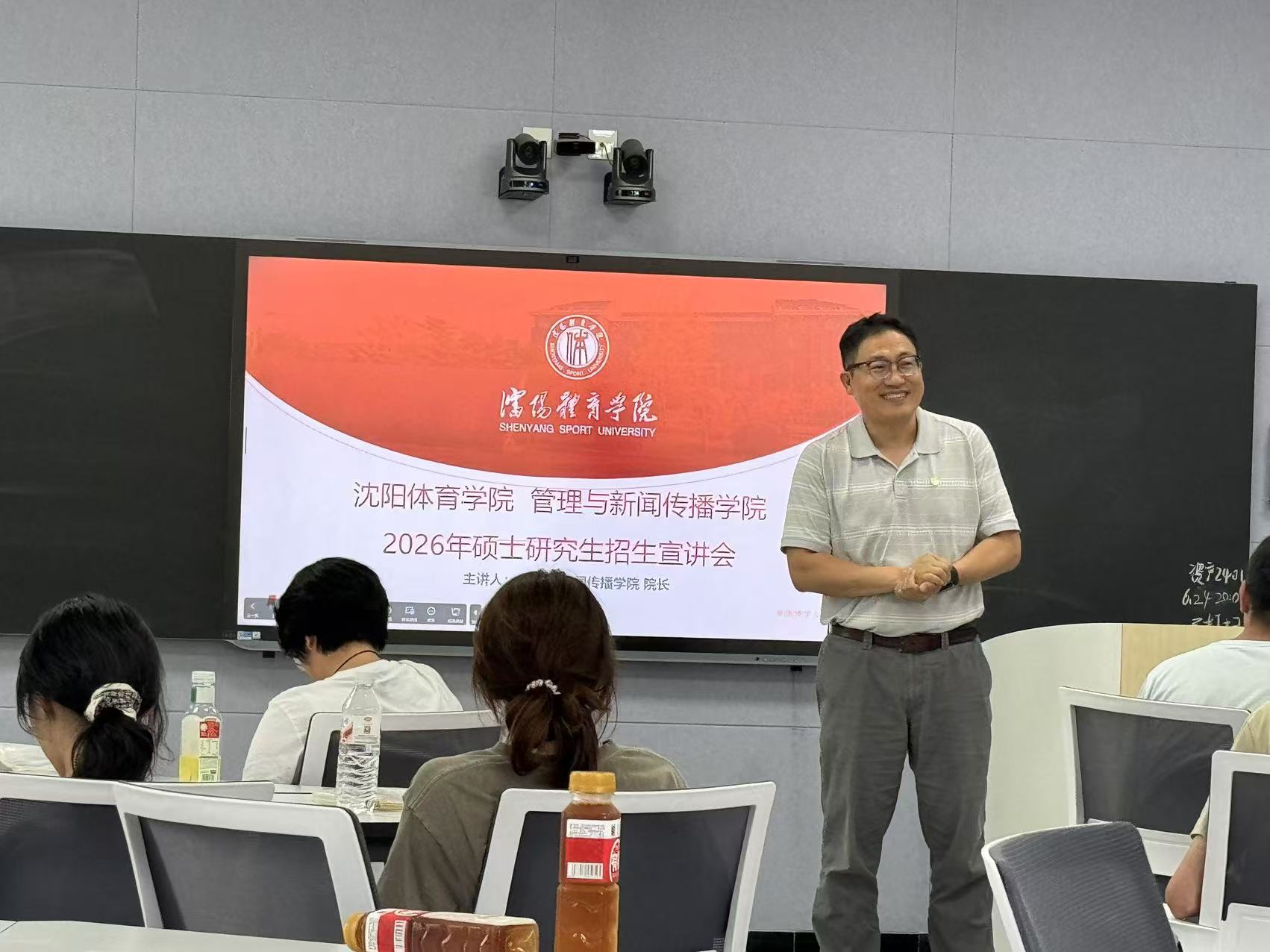 王嘉冰主任对两位院长的到来表示热烈欢迎与感谢。他强调,我院与沈阳体育学院作为睦邻院校,保持着友好亲密的联系。在人才培养等方面一直相互交流学习,两位领导的到来定能帮助我们的学生加深对新闻方向考研的了解,理清脉络,弥补信息差,把握机遇,成功上岸。