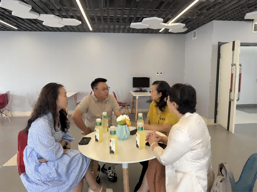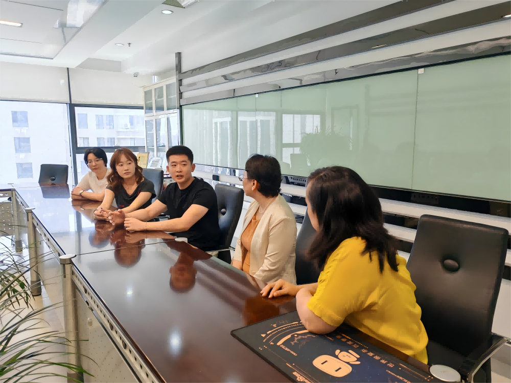 随后沈阳盘古内容中心艾萨总监、周珑经理、两位老师、在企业实习的3名学生进行了亲切的座谈。