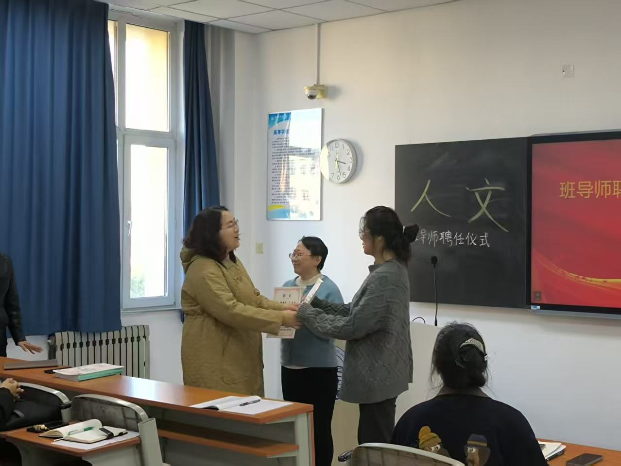 在热烈的掌声中,学院华玉瑶院长为新一届班导师逐一颁发了聘书。这份聘书,不仅代表着荣誉与信任,更承载着沉甸甸的责任与期望。新任班导师们接过聘书,也接过了为党育人、为国育才的神圣使命。