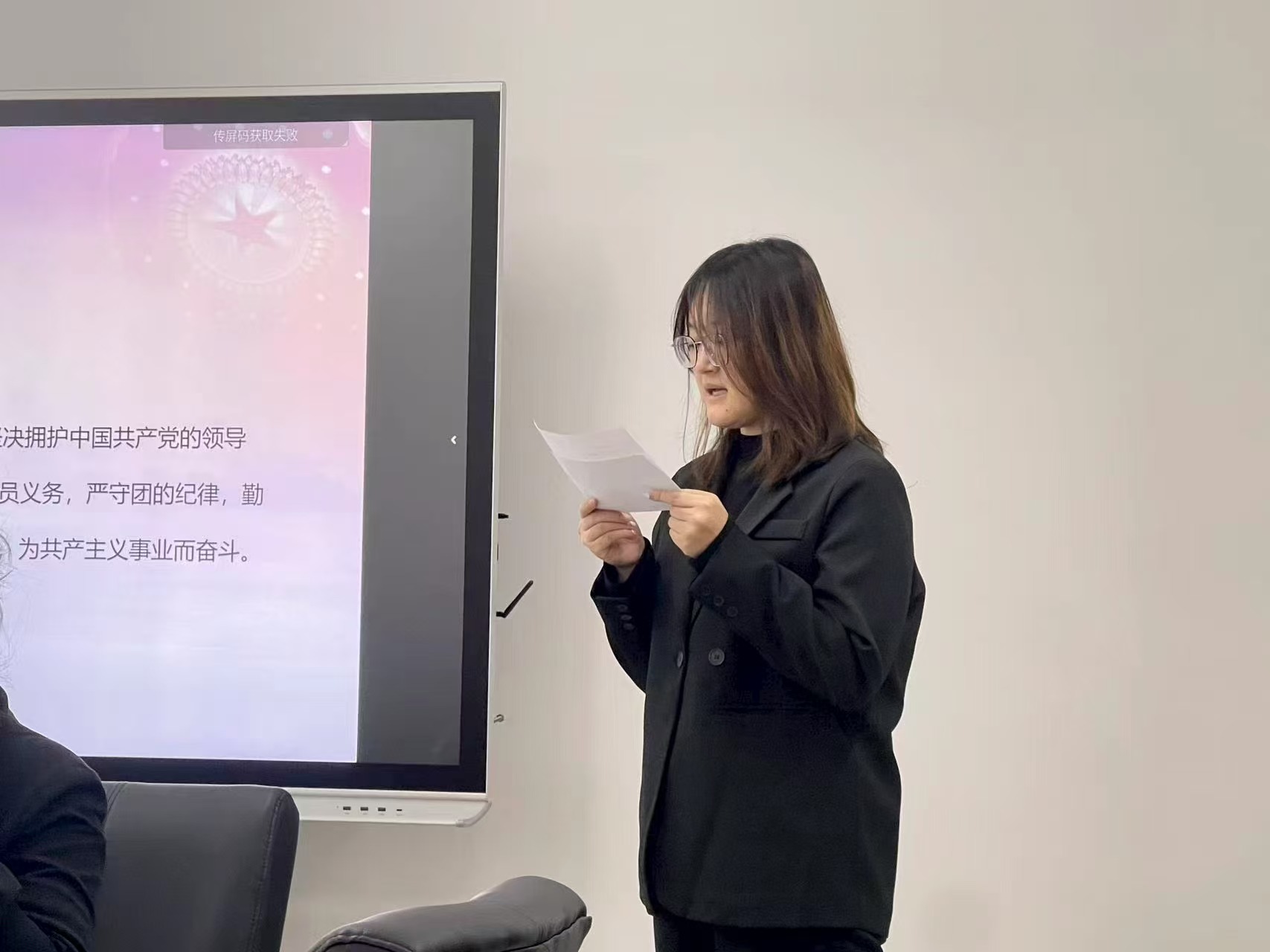 老团员代表周彦宏也向新团员们表示了热烈祝贺,并分享了在团组织中的成长与收获。鼓励新团员珍惜荣誉,牢记使命,将誓言转化为实际行动,在学习和生活中发挥模范带头作用,共同为团组织增添新的光彩。