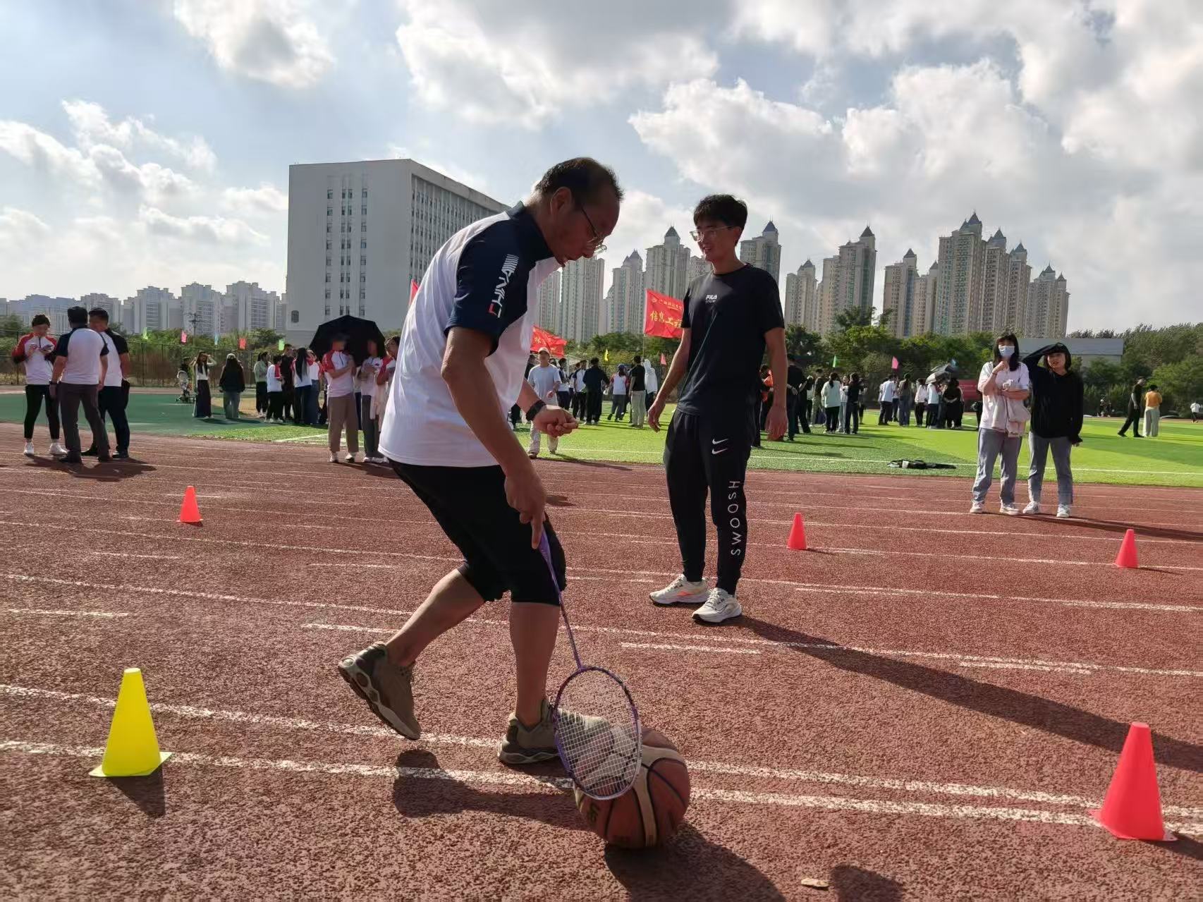 运动会的第一项,从运球接力项目开始!北校区体育场的跑道上,老师们化身控球大师。哨声一响,他们如离弦之箭般冲出,篮球在球拍下精准地滚动。这不仅是一场速度的比拼,更是对技术的考验。交接区,队友们紧张地伸出球拍,每一次交接都凝聚着团队的信任与默契。