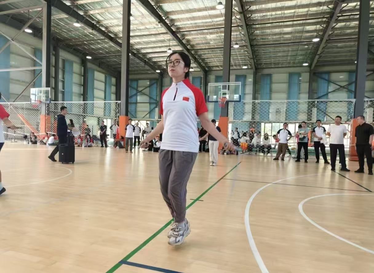 个人项目一分钟跳绳的赛场,是速度与耐力的秀场。裁判哨响,彩绳顿时在空中舞出道道弧线。老师们身轻如燕,双脚快速起跳,计数声、绳索拍地声、场边的加油声汇成一首动感的乐章。无论最终成绩如何,每一位坚持到最后的老师,都赢得了掌声与欢呼,展现了不凡的活力与风采。